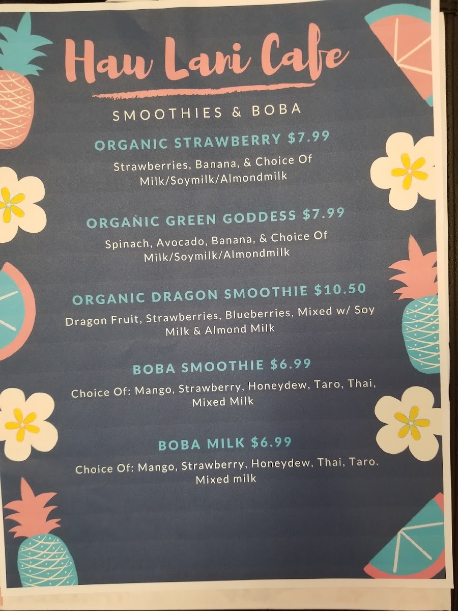 Hau lani shave ice. Snow ice .Use fruit syrup with ice cream. Boba. Sprite