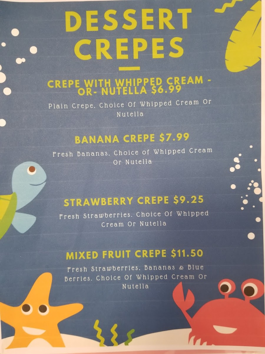 You can choose chocolate or walnuts inside Waffle. Crispy and soft waffle with cream cheese .whipped cream. Strawberry, Banana, Bluebell